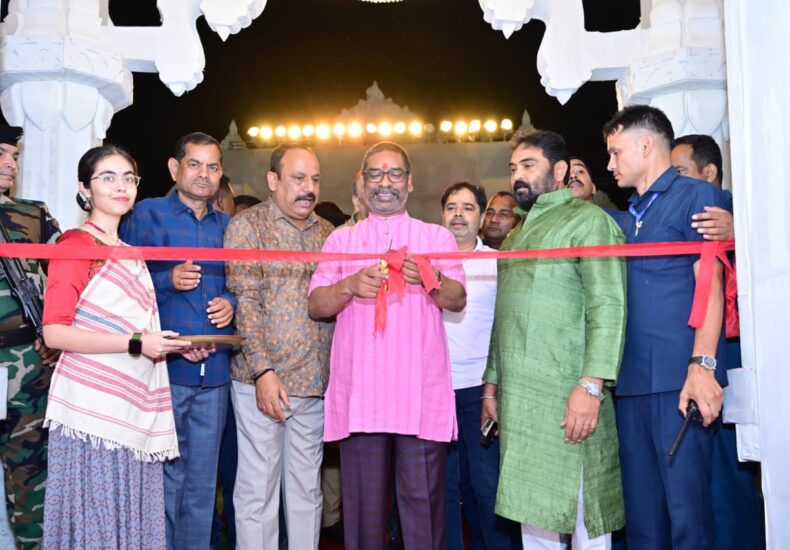 26 सितंबर 2025 आर०आर० स्पोर्टिंग क्लब, रातु रोड/पंच मंदिर दुर्गा पूजा समिति हरमू, रांची ★ मुख्यमंत्री श्री हेमन्त सोरेन ने शारदीय नवरात्र के शुभ अवसर पर आर०आर० स्पोर्टिंग क्लब, रातु रोड एवं पंच मंदिर दुर्गा पूजा समिति हरमू स्थित दुर्गा पूजा पंडाल का विधिवत् आवरण किया। ★ मुख्यमंत्री ने मां दुर्गा से समस्त राज्यवासियों की